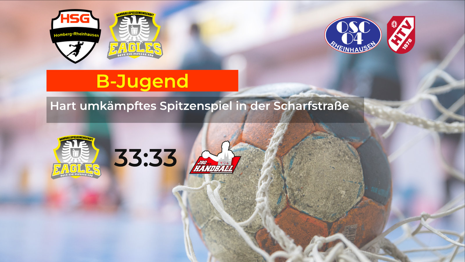 Im Heimspiel gegen die JSG Handball Köln II erlebten die Zuschauer in der Sporthalle an der Scharfstraße ein intensives und emotionales Spitzenspiel der männlichen B-Jugend, das am Ende leistungsgerecht mit 33:33 endete. Die Partie war von Beginn an ein offener Schlagabtausch, in dem sich beide Teams nichts schenkten.